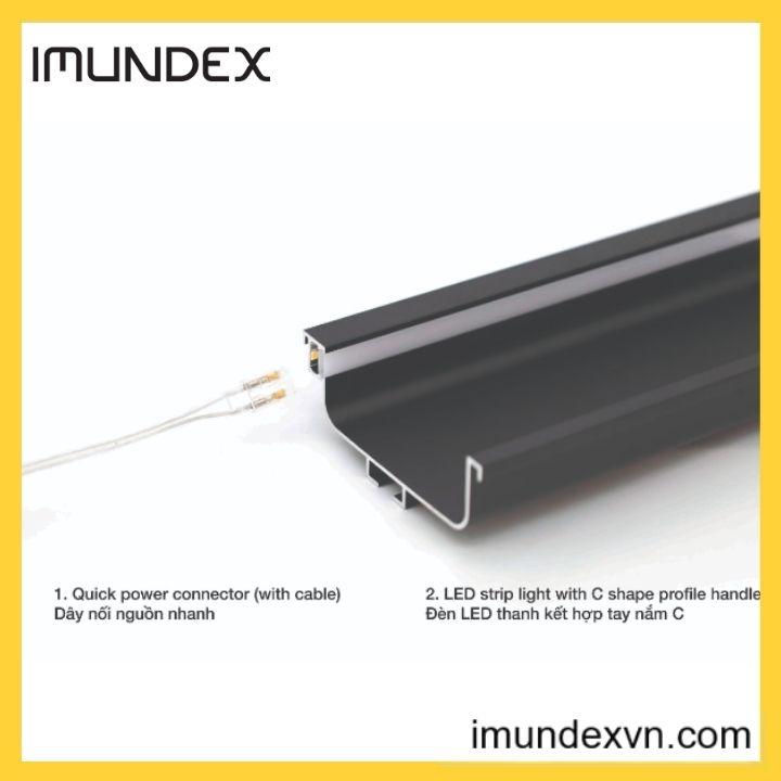 Đèn LED kết hợp tay nắm thanh C Imundex 7604228 là dòng phụ kiện nội thất cao cấp, được thiết kế tinh tế để mang lại sự tiện nghi và sang trọng cho không gian tủ bếp, tủ áo, tủ trưng bày hoặc tủ âm tường. Với cấu trúc tay nắm dạng chữ C kết hợp đèn LED chiếu sáng ánh trắng ấm (3000K), sản phẩm giúp không gian trở nên ấm cúng, hiện đại và nổi bật từng chi tiết nội thất.